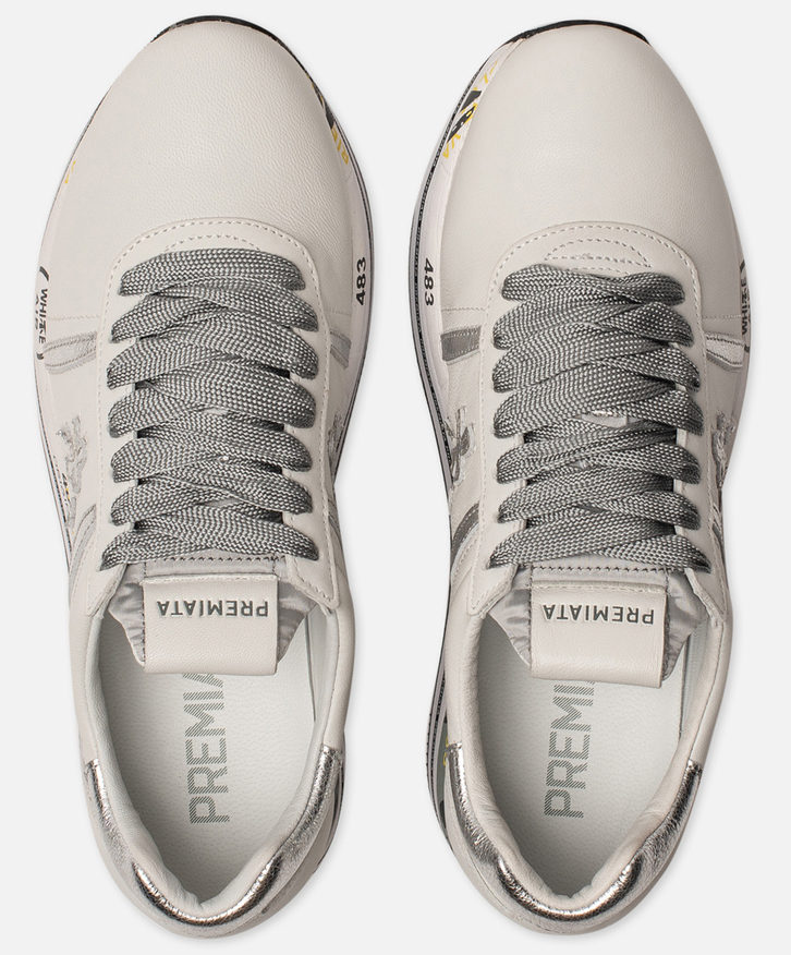 Серые кроссовки с серебристыми акцентами и мерцающими деталями. Элегантный дизайн с эффектом легкого блеска.