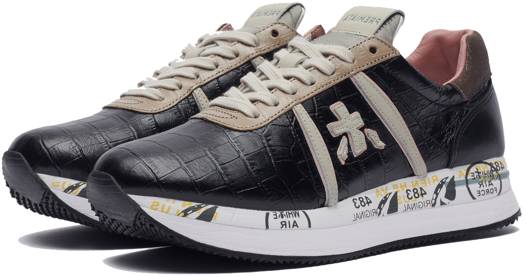 Premiata Conny 5327 черные с коричневым кожаные