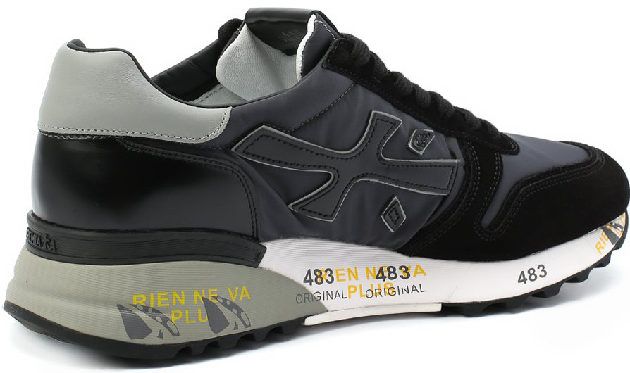 Черные кроссовки из комбинации материалов с детализированным дизайном и акцентом на фактуру. Универсальная модель для современного городского стиля.